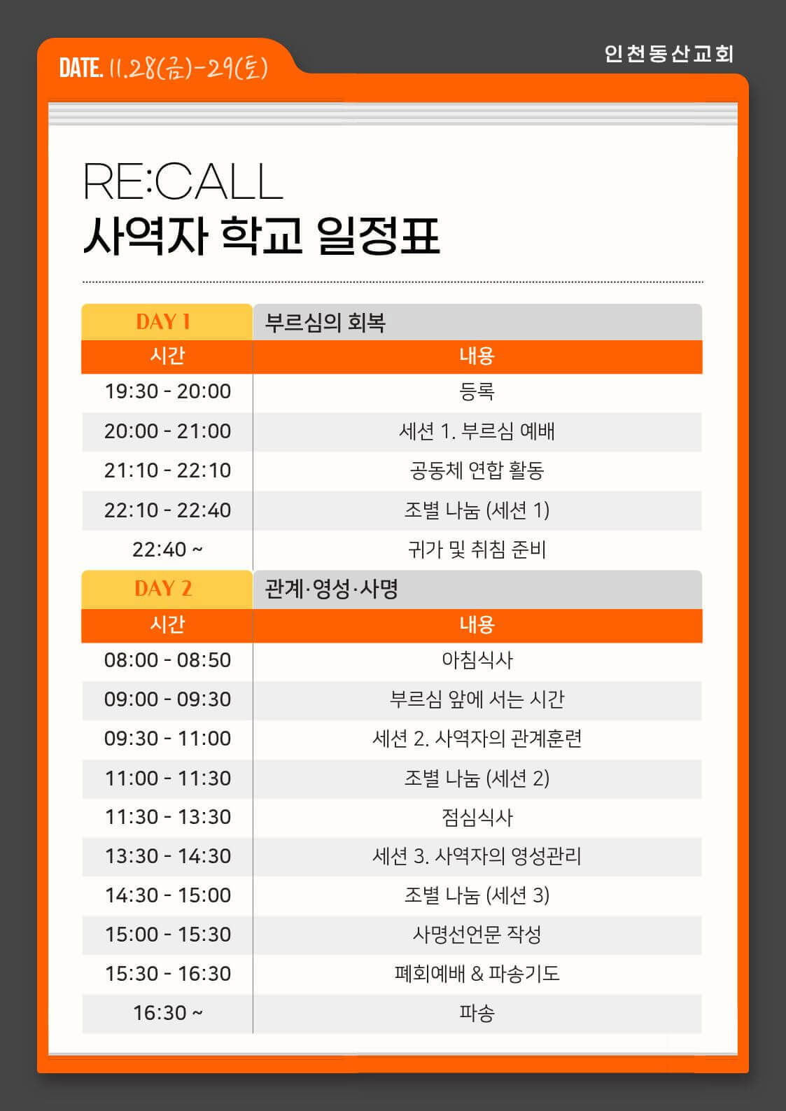 일시 : 2025년 11월 28일(금) 오후 19:30 ~ 11월 29일(토) 오후 17:00 (1박 2일)